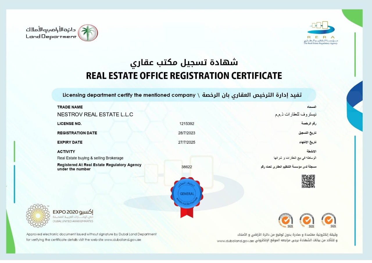Real Estate Agent Name and Rera: NESTROV REAL ESTATE L.L.C, 1215392